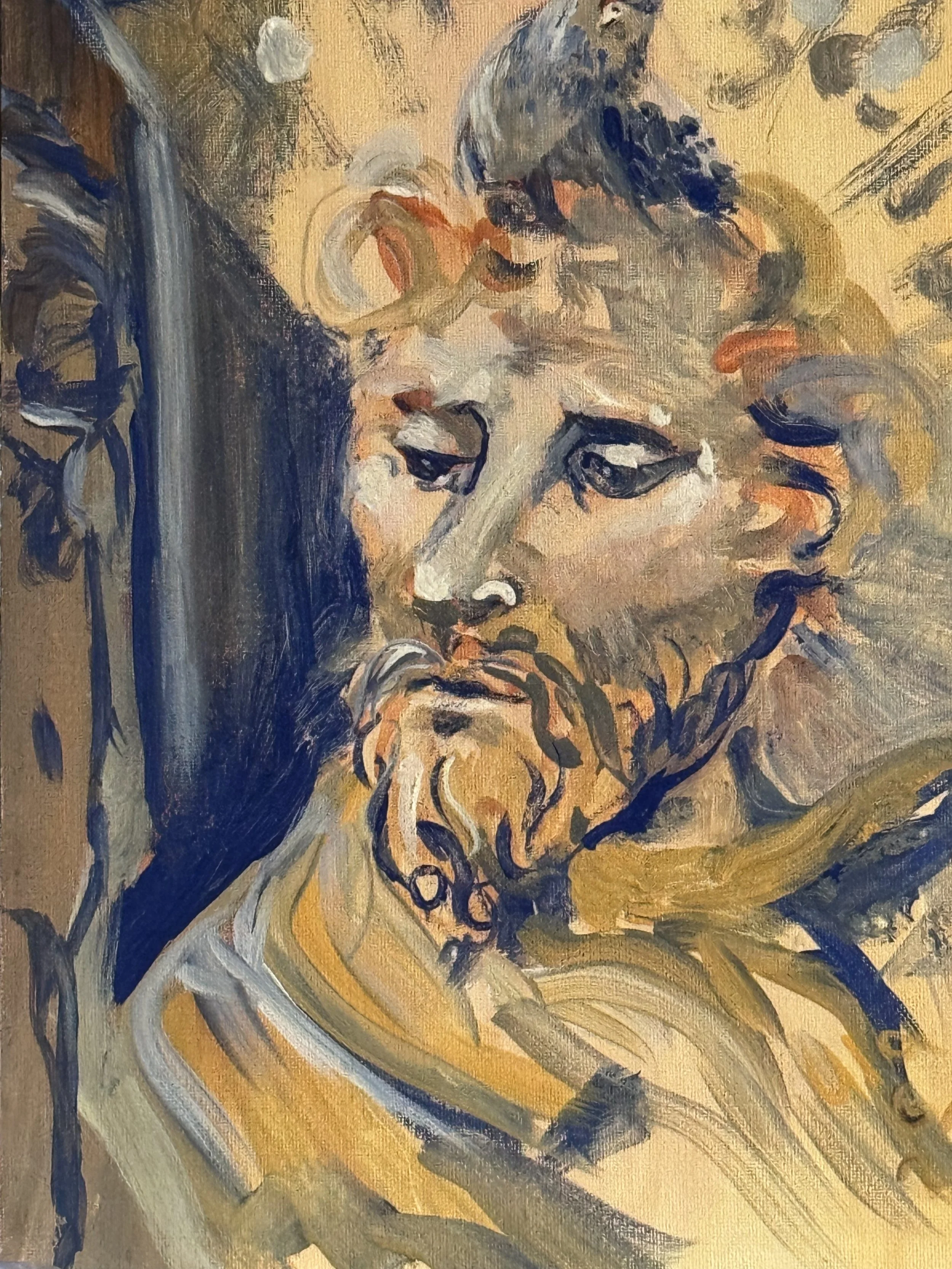 Diese Serie widmet sich ausgewählten Skulpturen des Bamberger Doms – neu gesehen, malerisch gefasst in selbst angeriebener Eitempera.