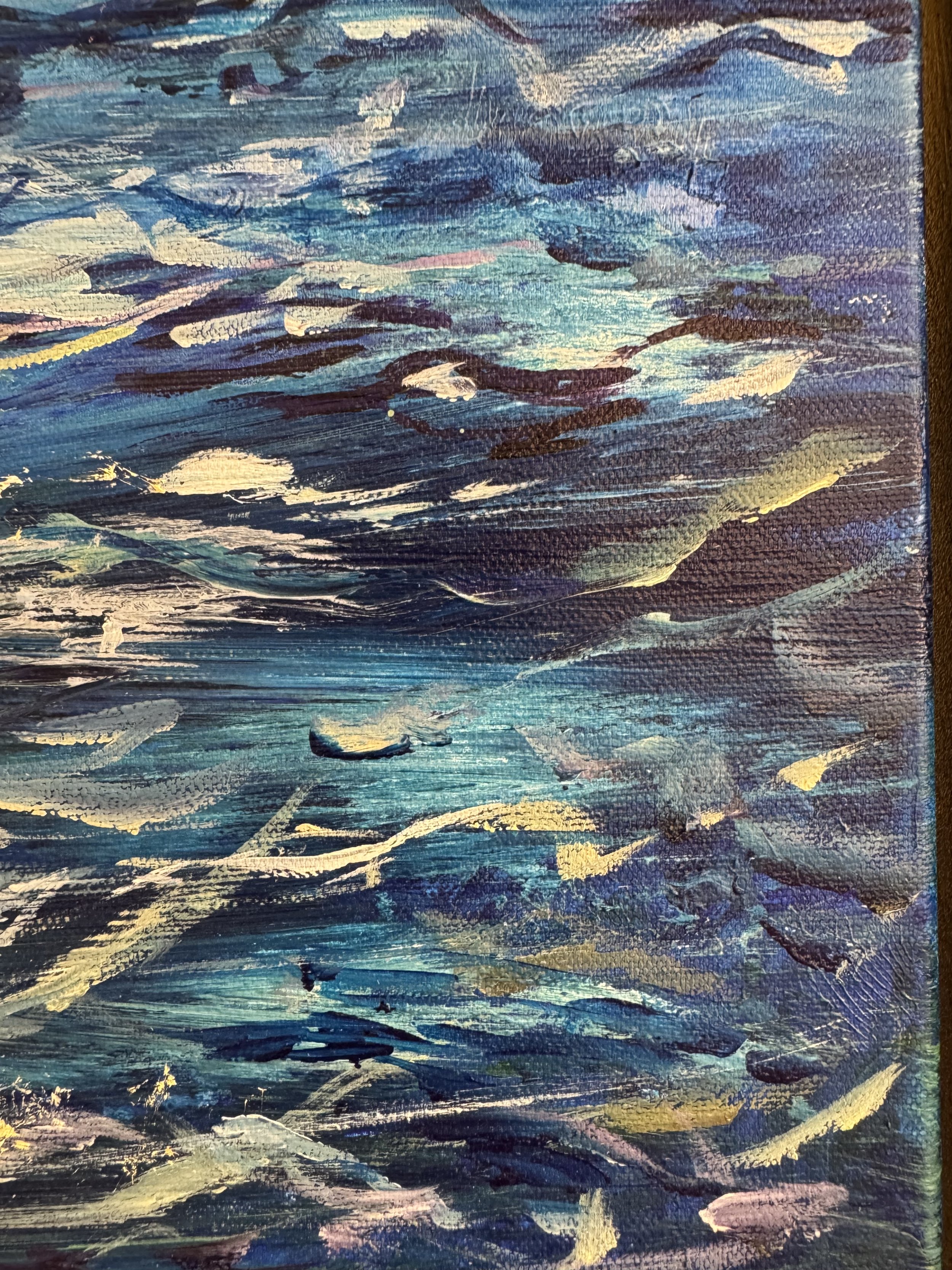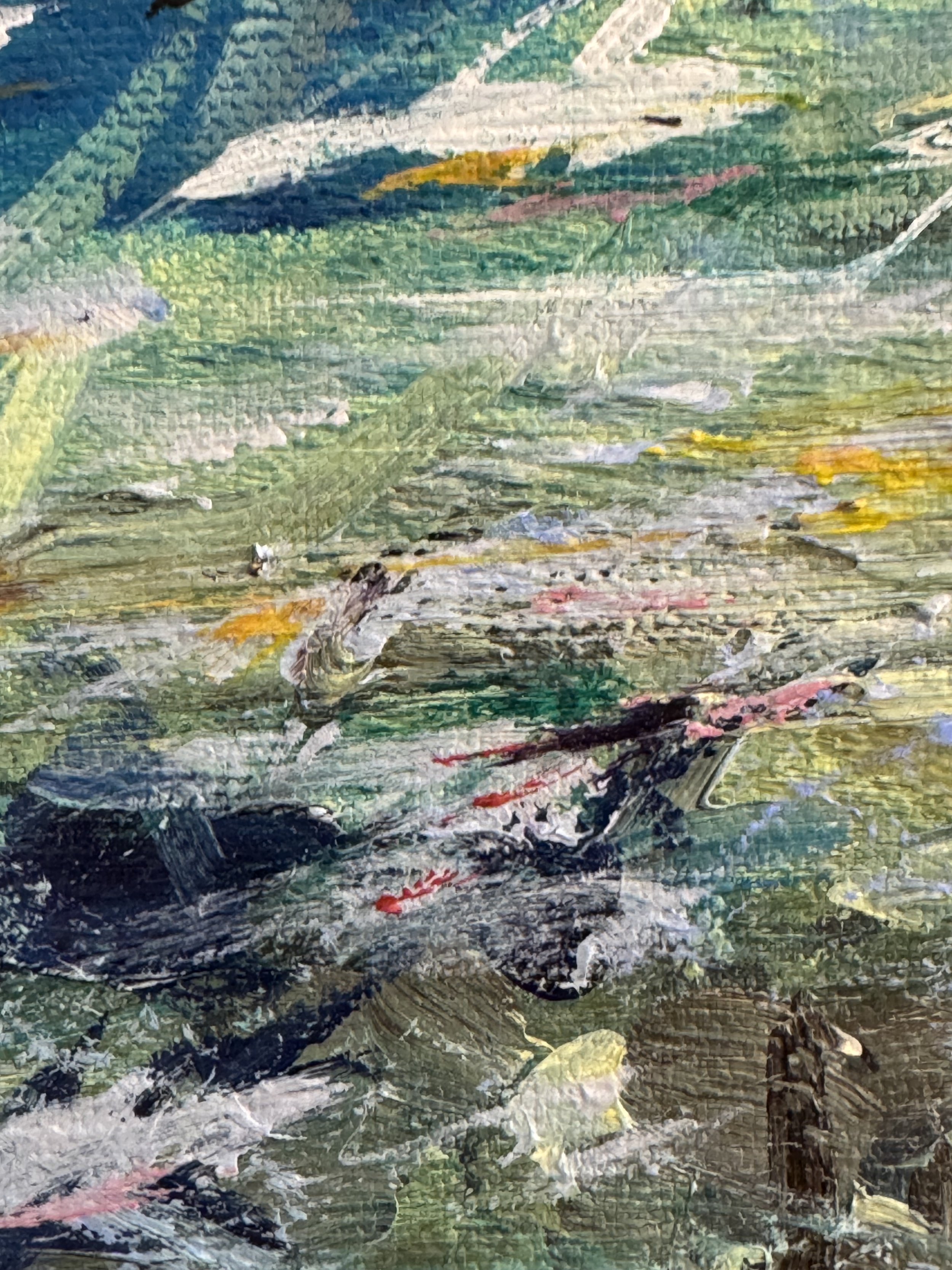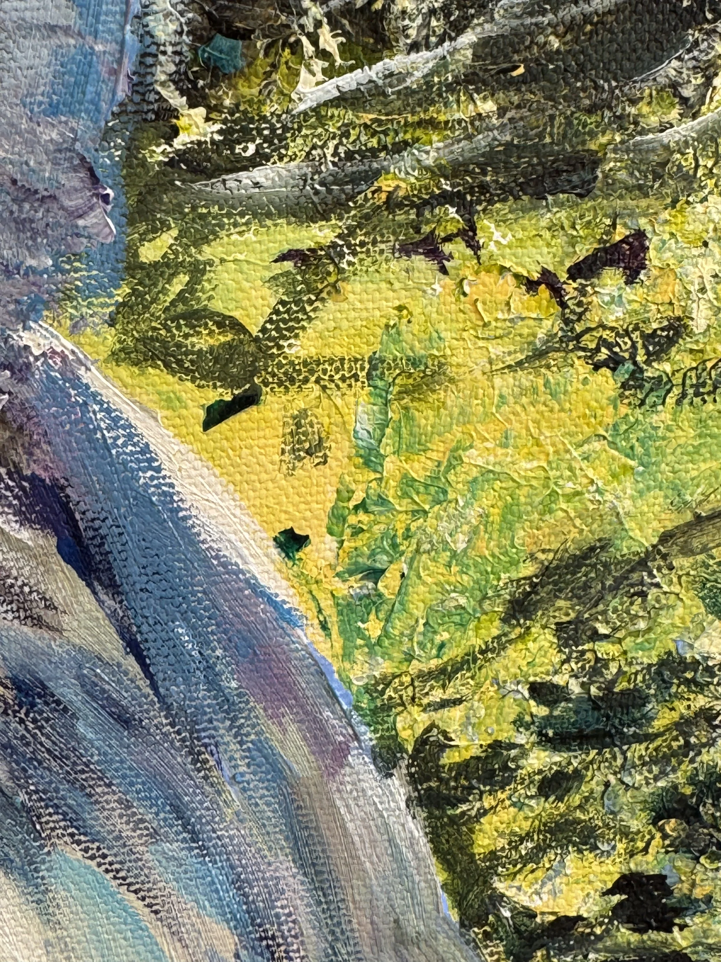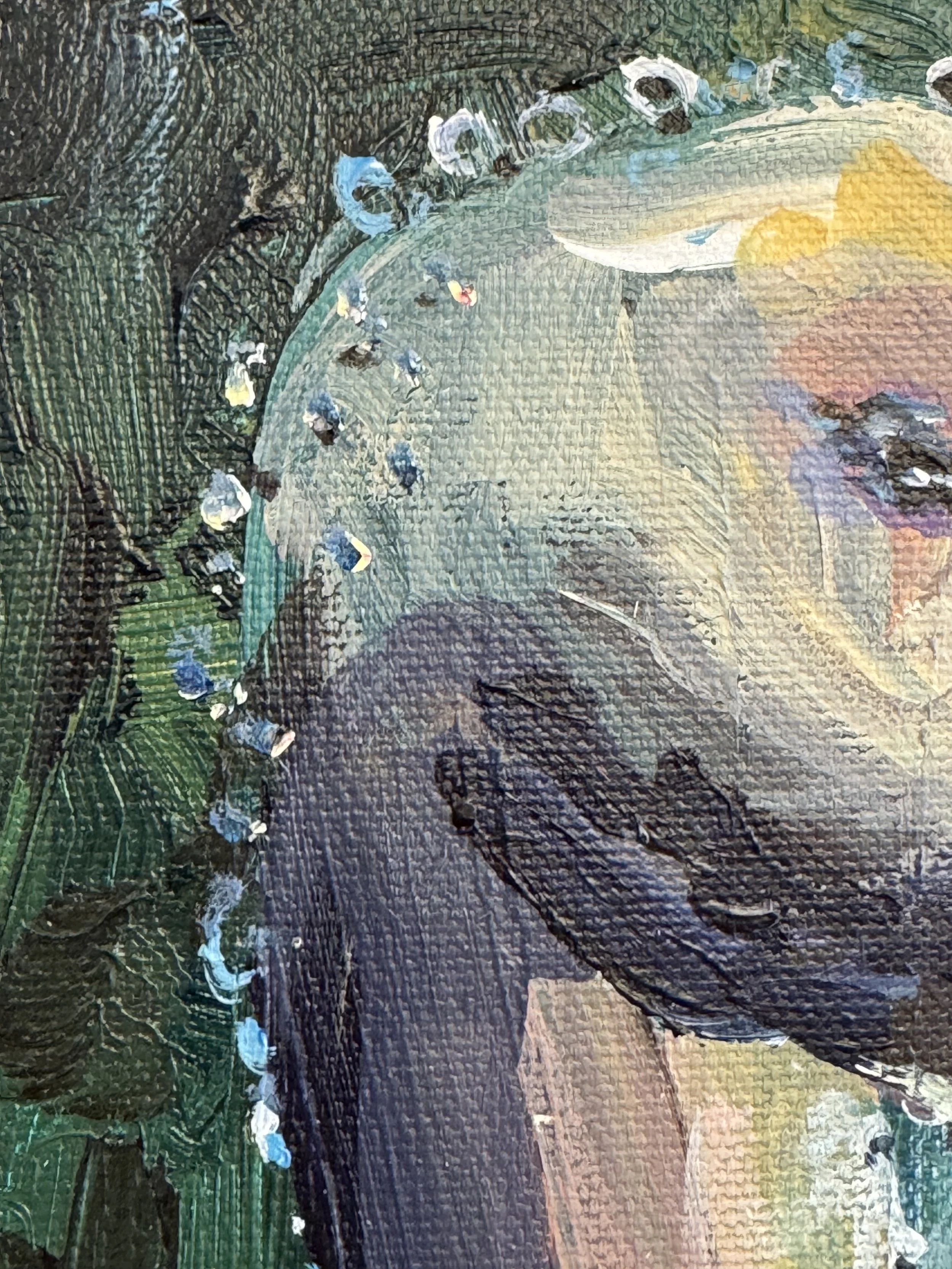 Er schaut uns an: offen, neugierig, fast schelmisch. Ein Bild für das Unerwartete, das uns nicht erschrecken will. Funfact: keine schwarze Farbe wurde in diesem Bild verwendet.